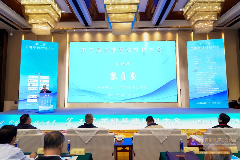 2025年11月7日至9日,由我校牵头主办的第三届关键基础材料大会在桂林隆重举行。学校党委副书记、校长王敦球出席开幕式并致辞。中国科学院院士朱美芳(线上)、中国工程院院士张联盟、中国科学院院士张荻,以及30多位国家级人才、学院院长,来自全国高等院校、科研院所的师生代表共300余人参会。