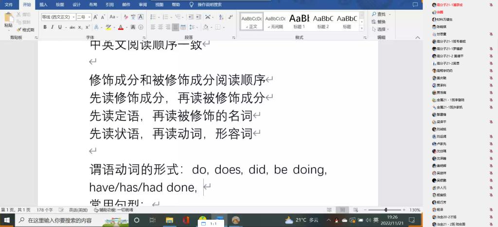 11月21日晚,材料学院英语四级冲刺培训班在线上正式开班。此次培训班邀请到了校外经验丰富的老师担任培训老师,以往年四级考试真题为训练内容,聚焦考试方法、答题技巧。学院计划从即日起到正式考试的周一晚上和周二下午进行集中培训,主要面向学院2020级和2021级的学生,共计150余人。