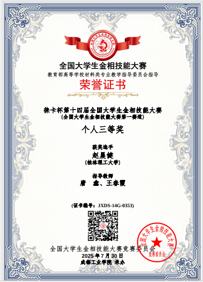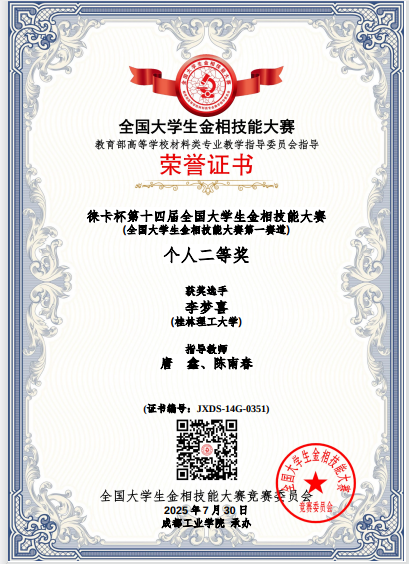 7月25日至30日,“徕卡杯”第十四届全国大学生金相技能大赛决赛于成都工业学院宜宾校区举行。yl23411永利参赛学生凭借扎实的专业知识、精湛的实操技能以及顽强的拼搏精神,在此次大赛中表现良好,荣获国家二等奖2项、三等奖2项。