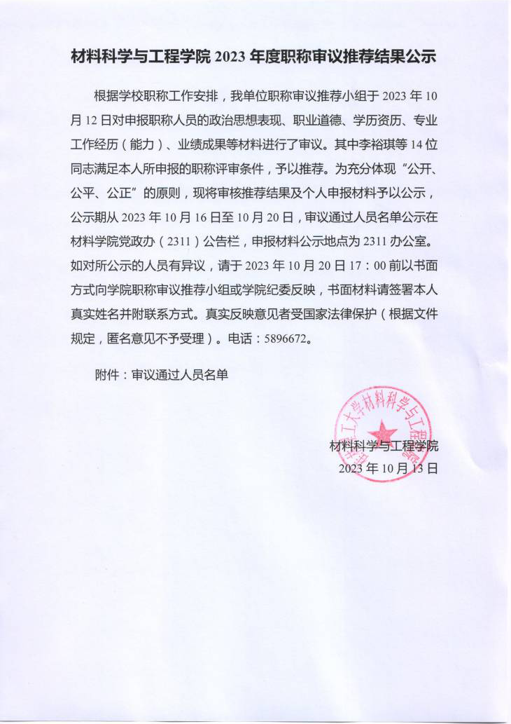 yl23411永利集团官网2023年度职称审议推荐结果公示