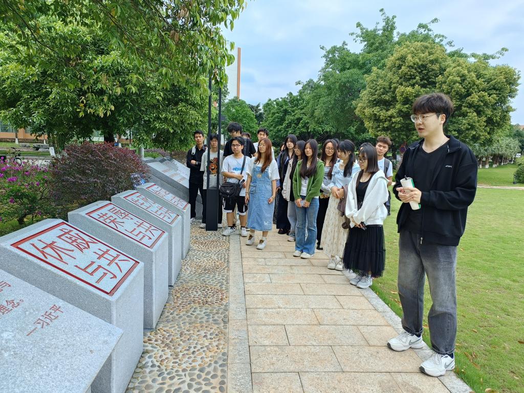 为深入贯彻落实党的民族政策,加强新时代大学生民族团结教育,铸牢中华民族共同体意识。4月25日,我院组织2024级新生班长、团支书等学生骨干到雁山校区民族团结园,开展以“石榴籽同心共筑梦”为主题的民族团结进步宣传教育现场教学活动。